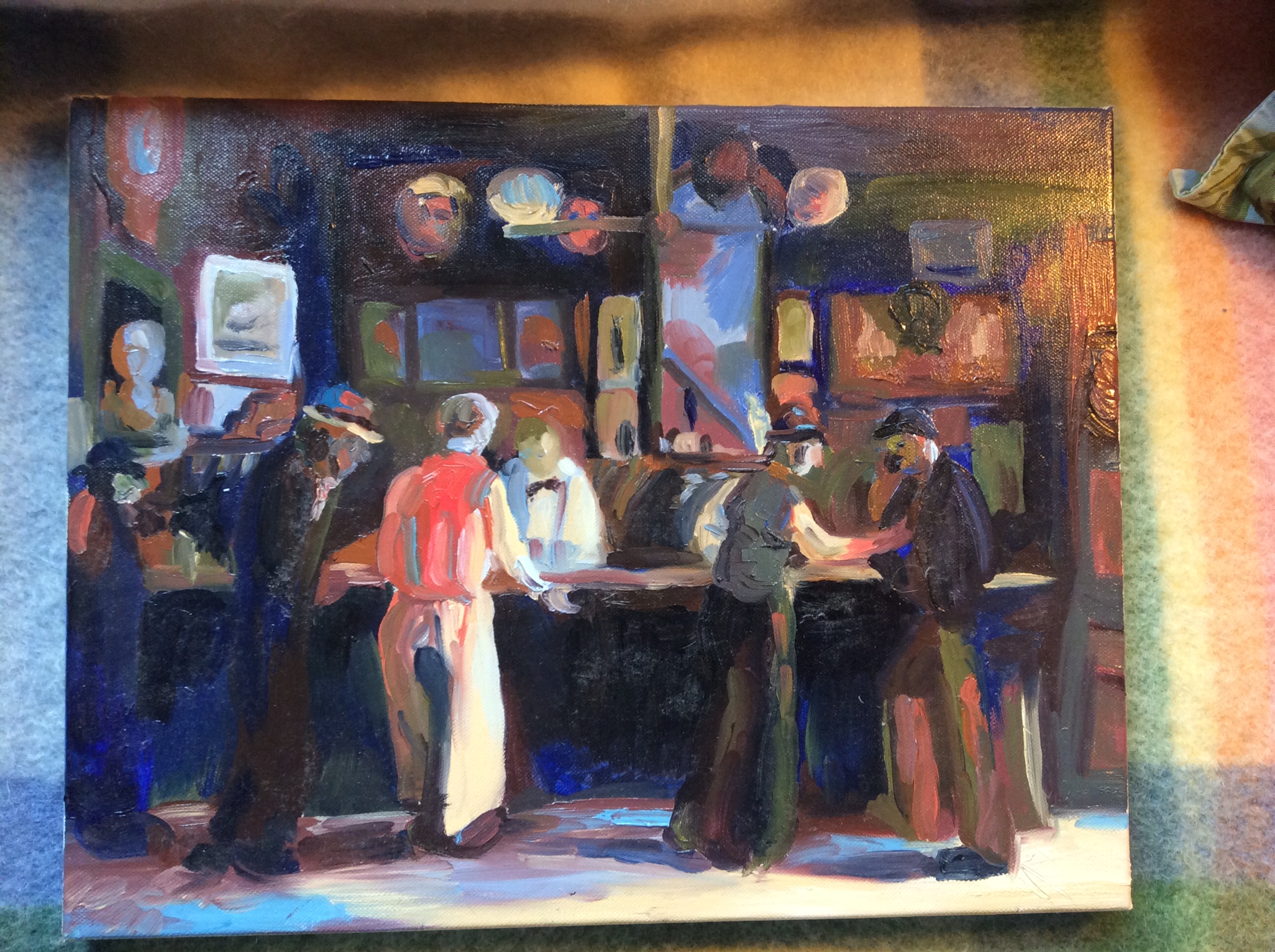 Ashcan School Inversion Two-hour reproduction of an Ashcan School painting, using only three colors of paint. Oil, 2006.